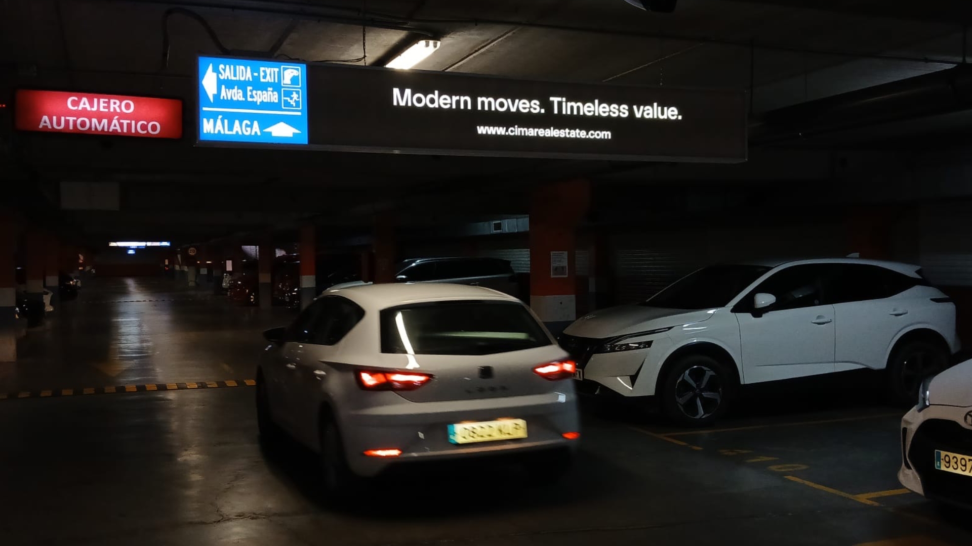 Luminosos situados en las salidas del Parking Zapallito ubicado en Estepona, a lo largo del paseo Marítimo.