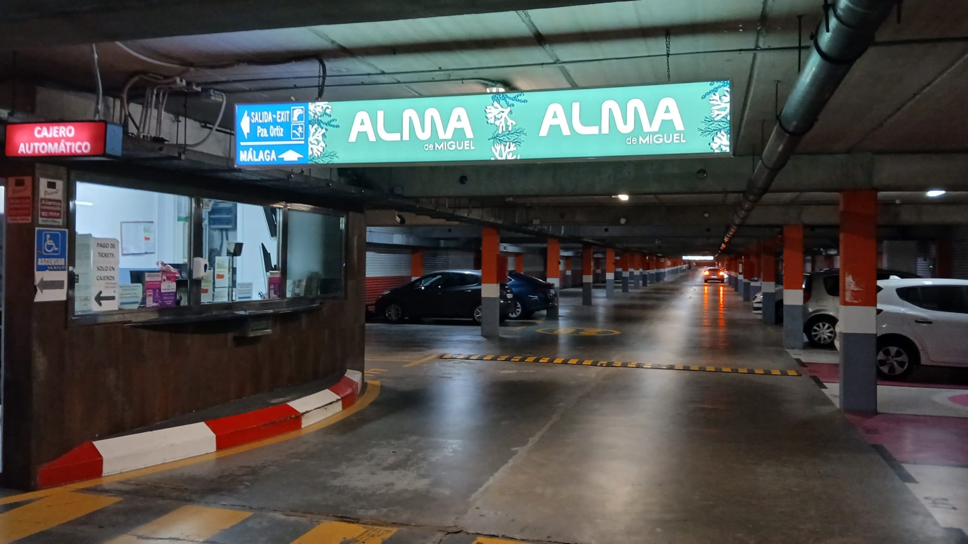 Luminosos situados en las salidas del Parking Zapallito ubicado en Estepona, a lo largo del paseo Marítimo.