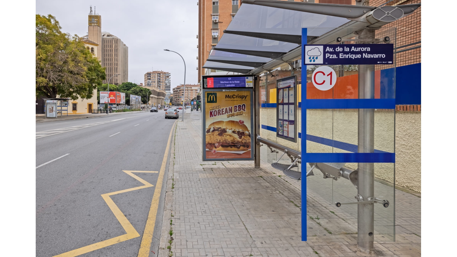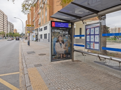 Soporte emplazado en una de las arterias de Málaga, con circulación sostenida y paradas de transporte que concentran espera y atención. La marquesina ofrece una oportunidad de impacto cercano y repetido, adecuada tanto para branding como para campañas con llamada a la acción (promos, aperturas, eventos). Recomendable para anunciantes que buscan cobertura urbana amplia y presencia en recorridos diarios. Perfecta para reforzar presencia de marca y mantener continuidad de campaña por repetición.