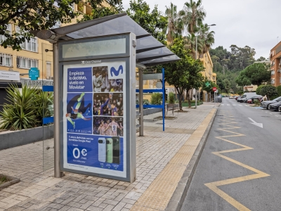 Soporte de marquesina en Málaga orientado a maximizar impactos por repetición en recorridos habituales. La ubicación ofrece visibilidad de proximidad y un contacto directo con el usuario, ideal para mensajes claros, promociones y campañas de notoriedad en entorno urbano. Recomendada para anunciantes que buscan cobertura estable y coste-eficiencia. Recomendable para creatividades limpias, alto contraste y mensajes de lectura rápida.