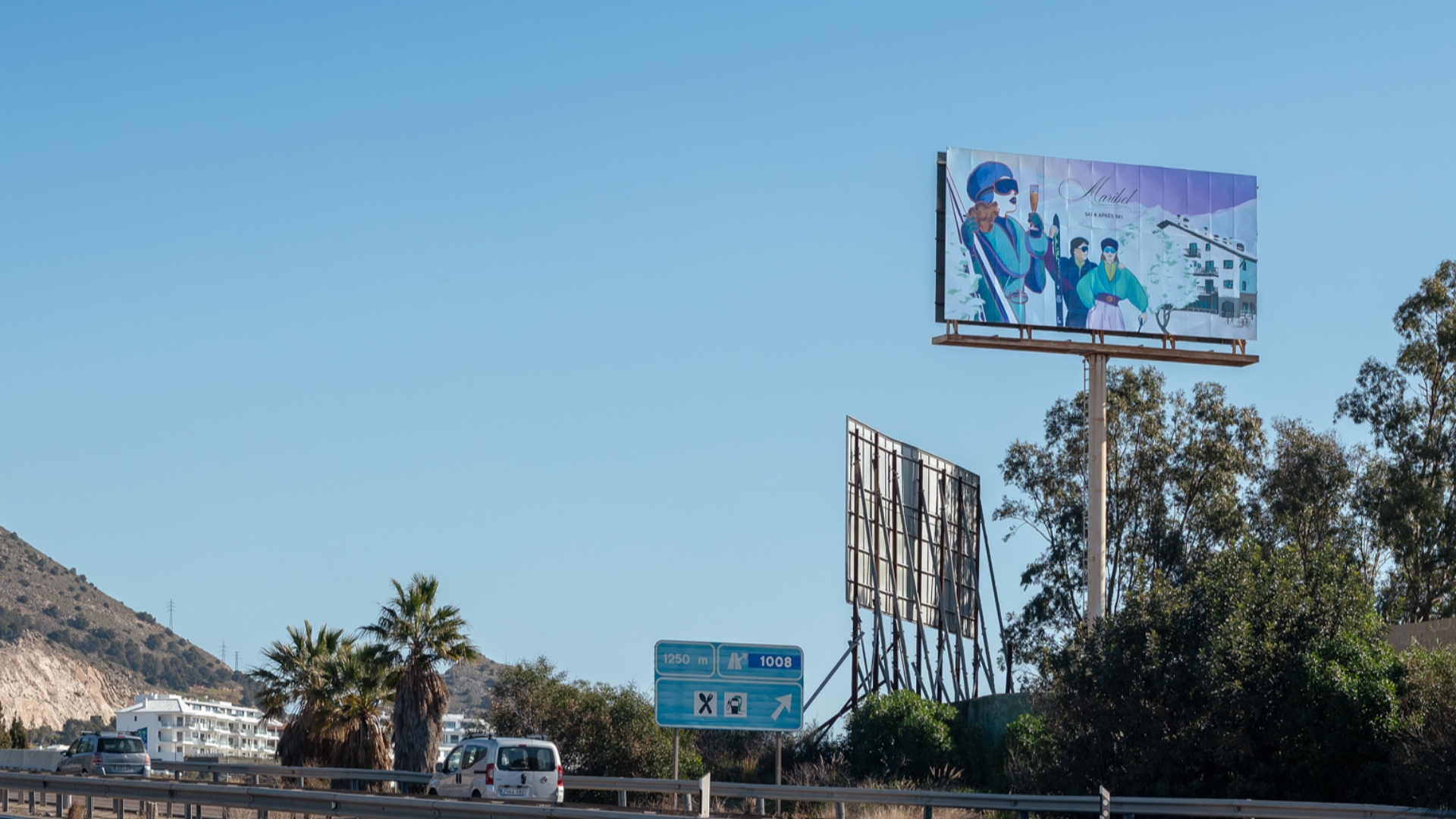 Monoposte publicitario situado en la autovía A7 a su paso por Benalmádena en la zona de El Higuerón. Gracias a su doble cara es visible en dirección de subida hacia Málaga y en dirección de bajada hacia Fuengirola y Marbella.