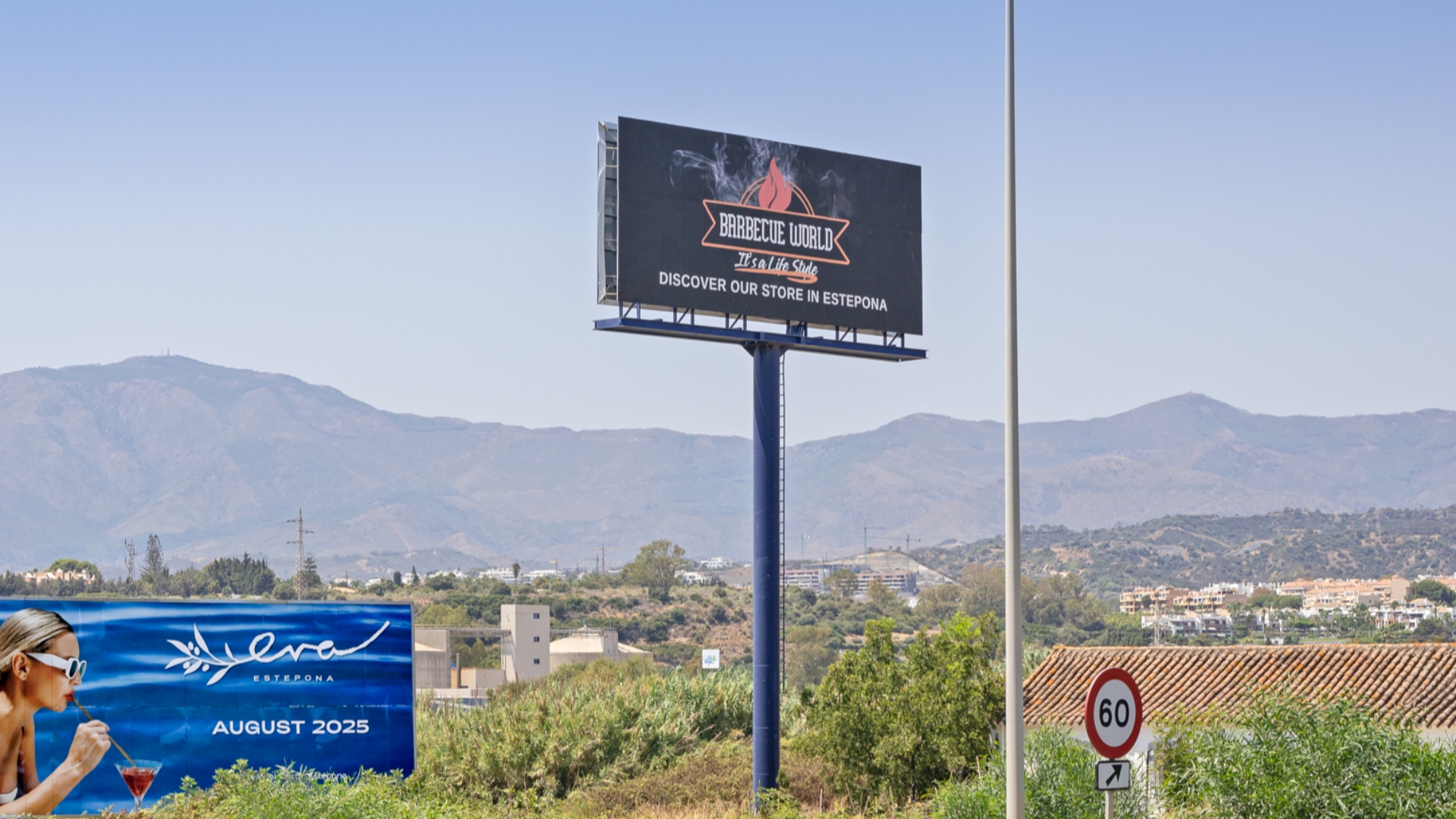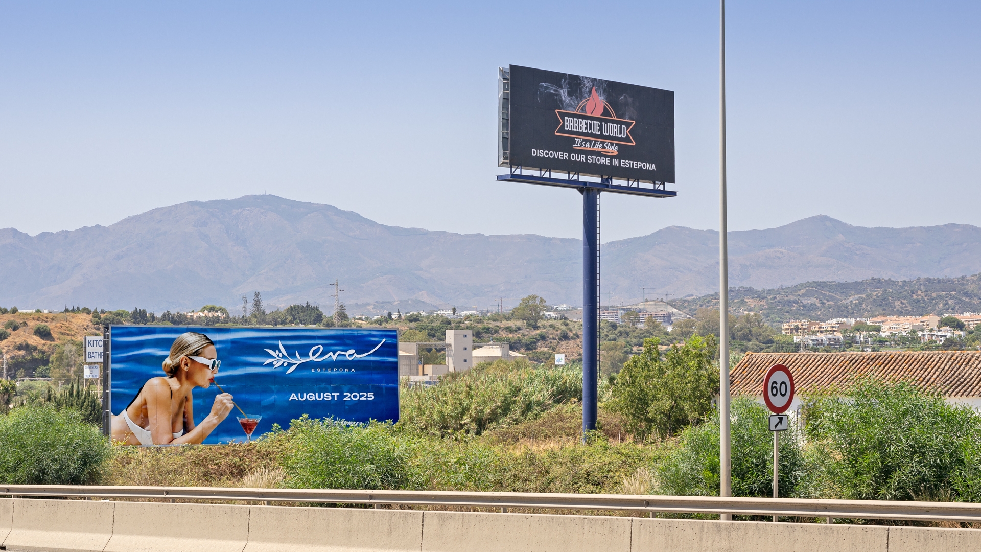 Monoposte publicitario de medidas 12 x 5 m, ubicado en la Autovía A7 (N-340) a la altura de Agrojardín, dirección Marbella/Estepona