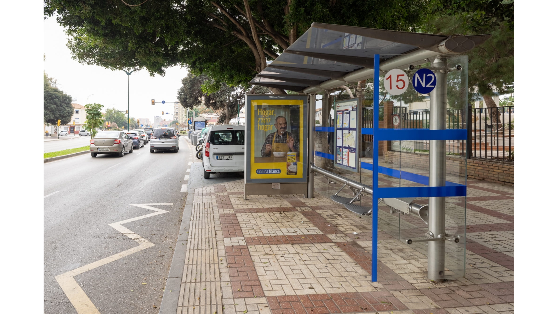 Mupi premium ubicado en un punto de paso constante, ideal para campañas de alcance local y recuerdo de marca. Está integrado en un eje de movilidad urbana donde confluyen vehículos, peatones y transporte público. Recomendado para campañas de 2 a 4 semanas con creatividades claras, claim corto y visual dominante. Consejo creativo: incluye QR solo si es grande y con espacio; mejor una URL corta y memorable.