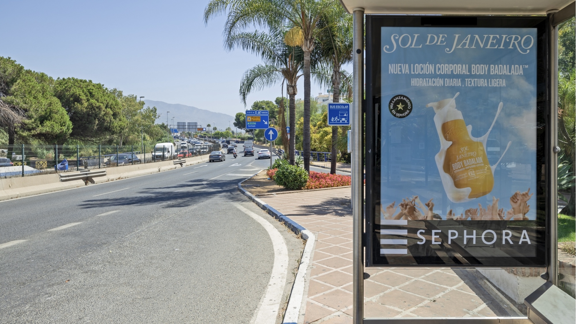 Este soporte publicitario está estratégicamente ubicado en la parada de autobús de Puerto Banús, en la N-340 frente al puerto, garantizando una exposición continua a un público diverso, incluyendo residentes, turistas y clientes de alto poder adquisitivo.