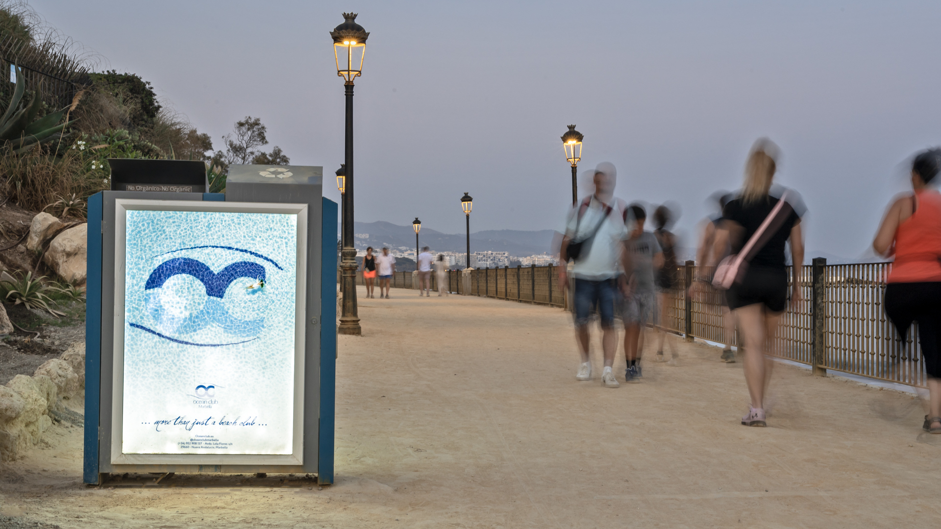 Contamos con 400 soportes útiles, limpios y modernos, situados en las principales arterias de Marbella que le permitirán mostrar su publicidad en una impresión retroliluminada de alta calidad que interactúa directamente con el viandante y conductores.