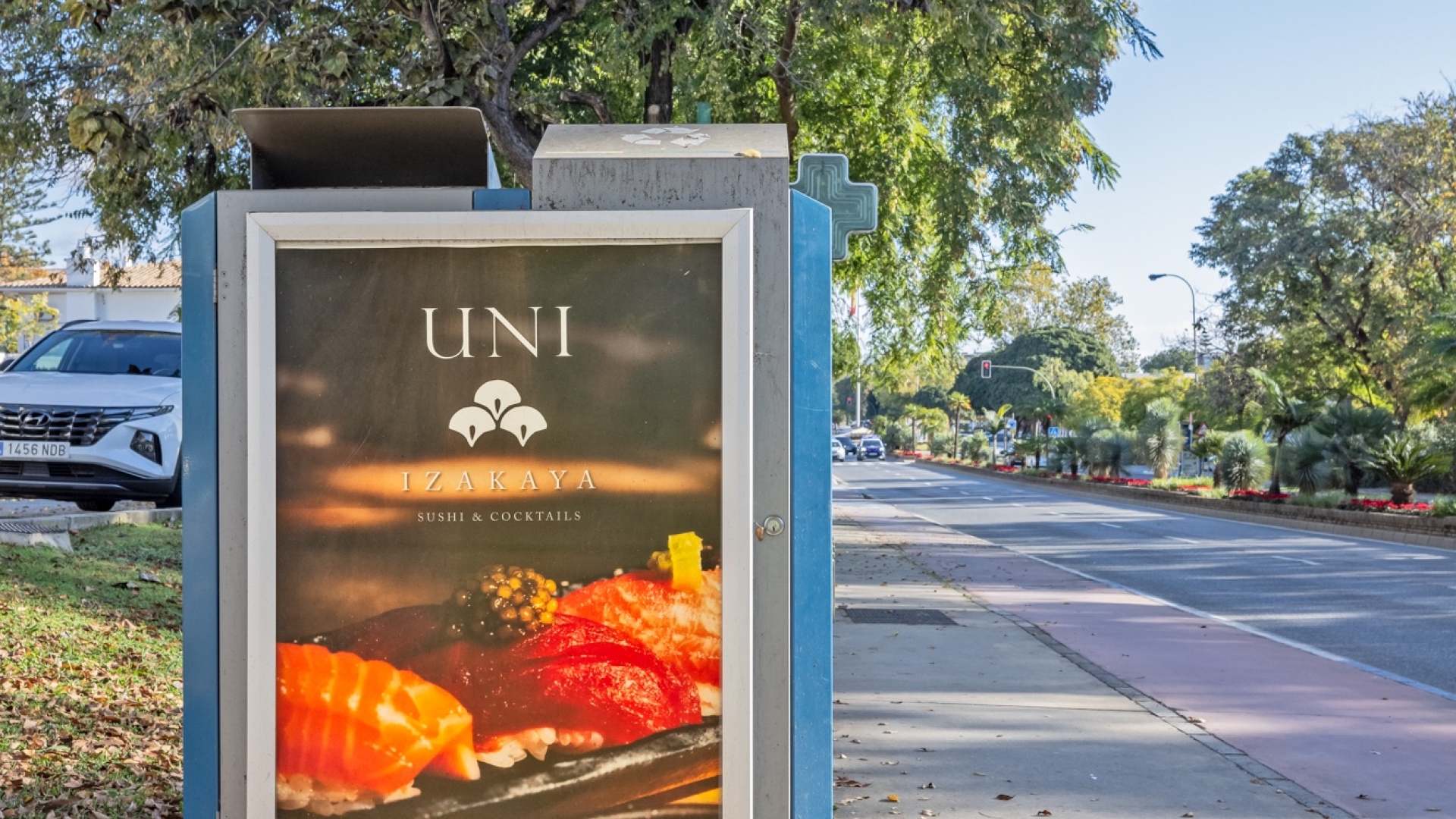 Contamos con 400 soportes útiles, limpios y modernos, situados en las principales arterias de Marbella que le permitirán mostrar su publicidad en una impresión retroliluminada de alta calidad que interactúa directamente con el viandante y conductores.