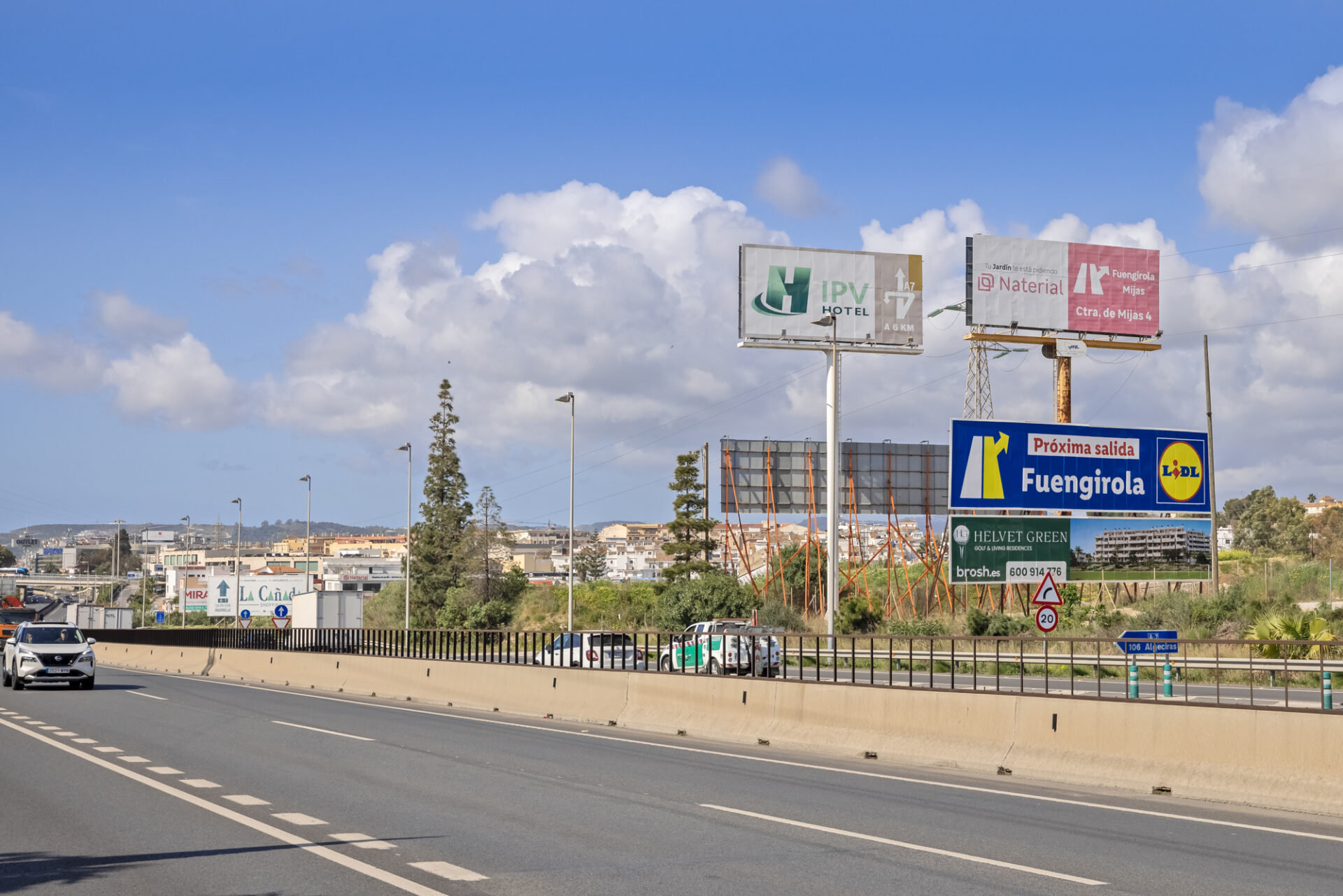 Para Helvet Green, Brosh ha elegido una valla publicitaria de 16 x 3 m en Fuengirola, en dirección Marbella. Un soporte de gran formato, pensado para asegurar una presencia destacada en una vía de alta circulación y reforzar la notoriedad del proyecto ante una audiencia en movimiento constante.
