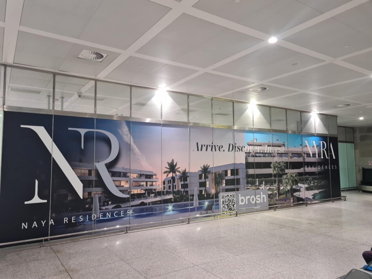 En el caso de Naya, la campaña combina dos soportes de alto valor estratégico. Por un lado, un mupi en Puerto Banús, en dirección Estepona, ideal para ganar visibilidad en un entorno urbano premium con gran afluencia. Por otro, un vinilo en el aeropuerto de Málaga, en la zona de recogida de maletas, una ubicación especialmente interesante para conectar con viajeros nacionales e internacionales desde su llegada a la Costa del Sol.
