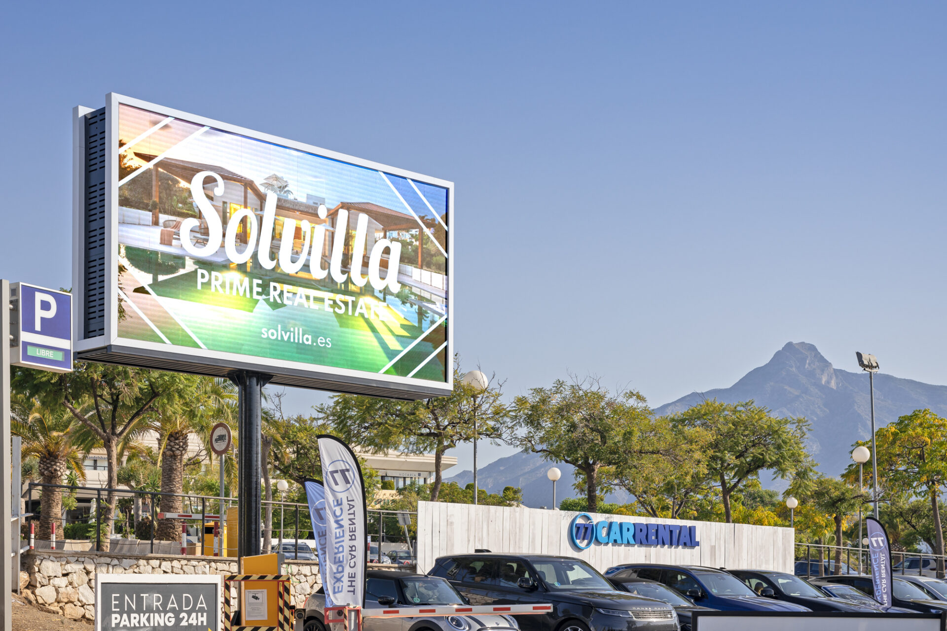 - Vallas y monopostes (alta presencia): ideales para posicionamiento y notoriedad en ejes de tráfico.
