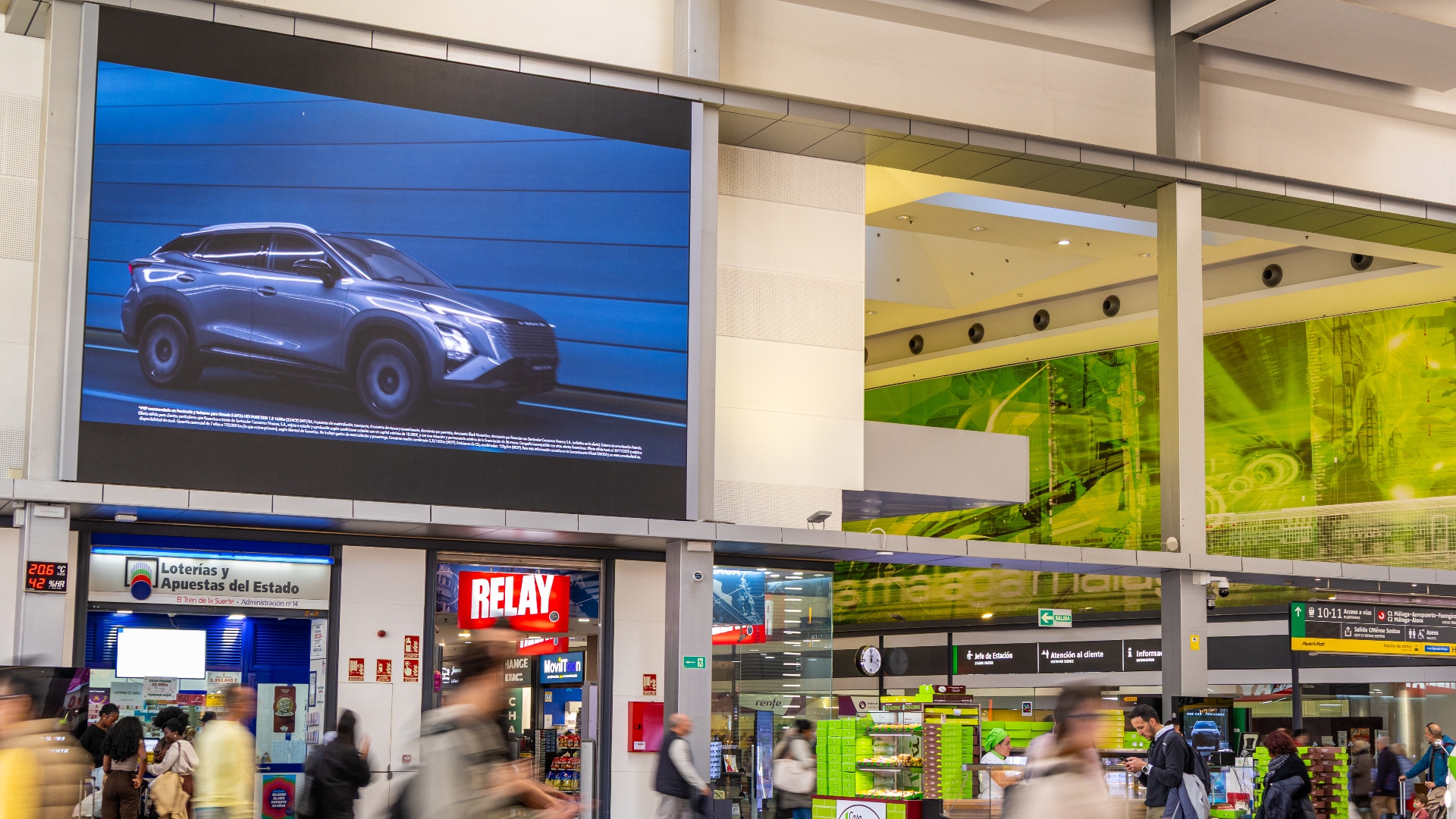 Con una media de 25.000 impactos diarios y más de 7 millones de visitantes anuales, este soporte garantiza una exposición continua ante viajeros del AVE, turistas y público local en tránsito. Su formato digital permite creatividades en movimiento que captan la atención al instante.
