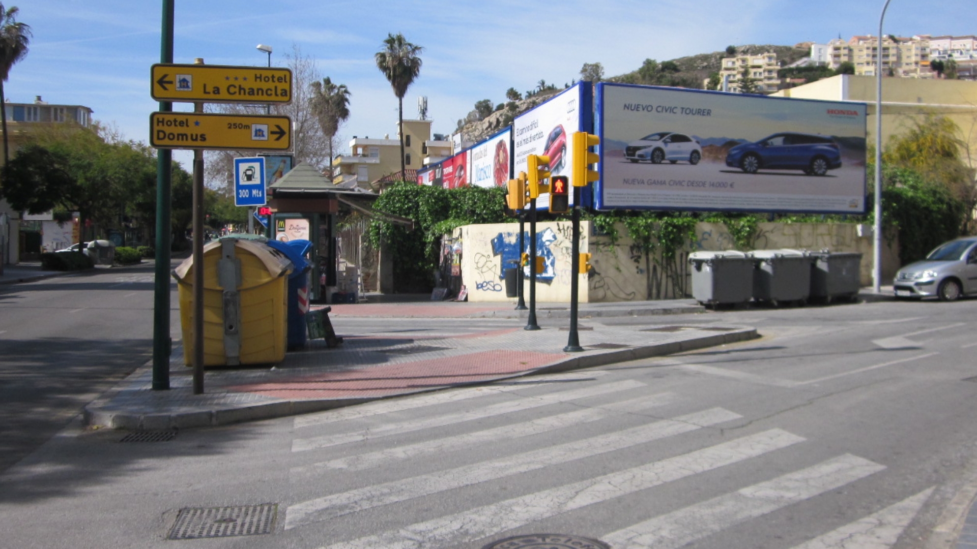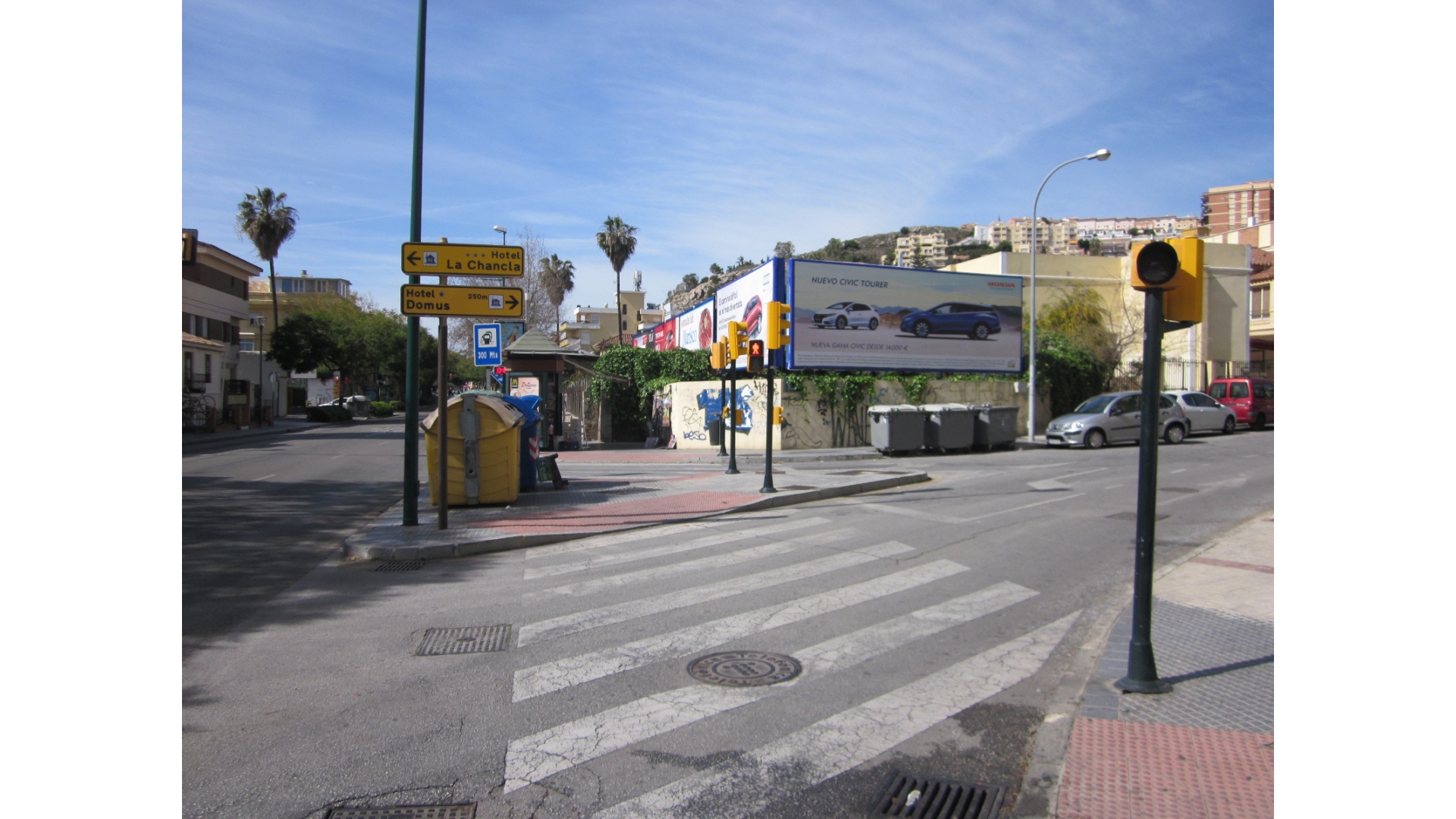 Valla publicitaria ubicada en Avda. Juan Sebastián Elcano (esquina Juan Valera), Málaga, en un entorno residencial consolidado de la zona Este, con flujo constante de tráfico local y comarcal a lo largo del día. Su emplazamiento en cruce y punto de giro le aporta un plus de visibilidad: el vehículo reduce velocidad, aumenta el tiempo de exposición y mejora la lectura del mensaje, especialmente en creatividades con titulares claros y alta presencia de marca.