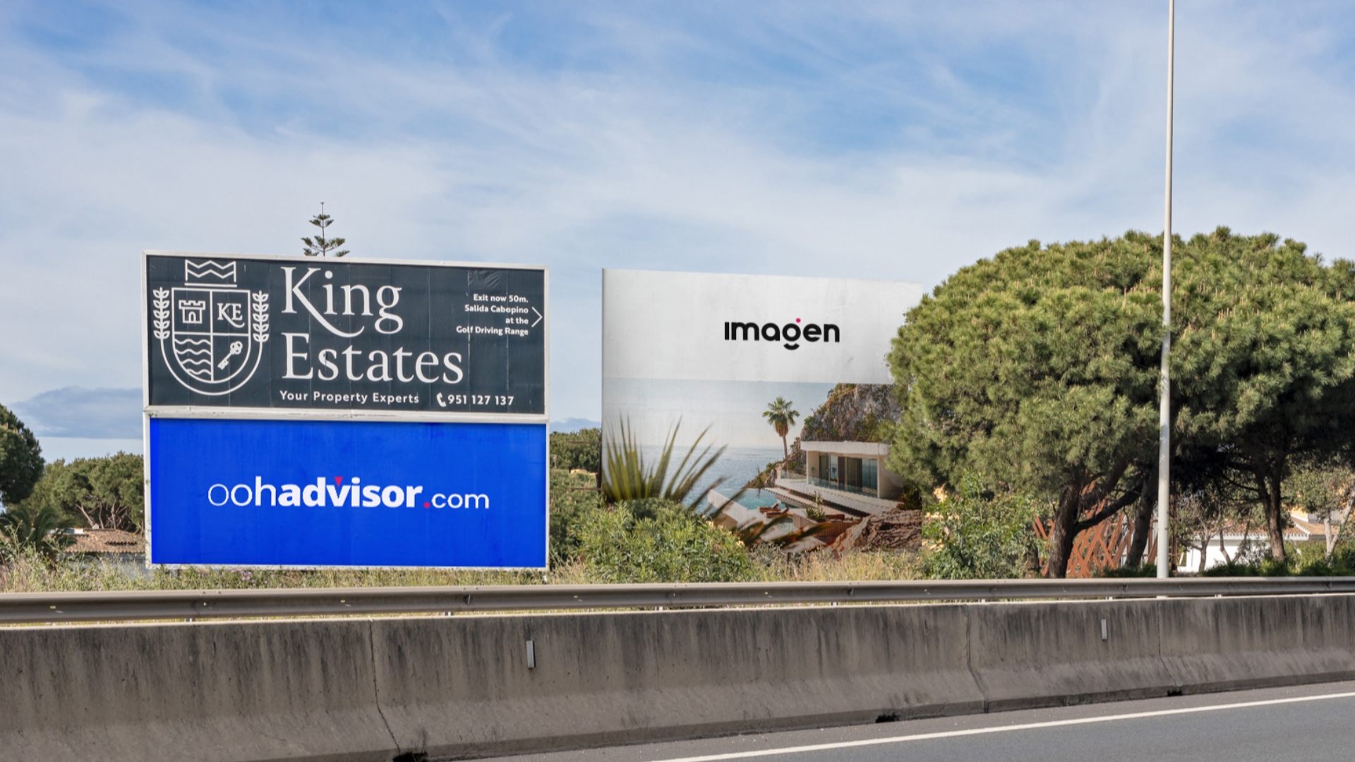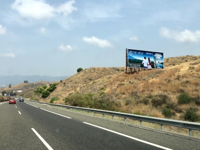 Valla publicitaria en Autovía A7 a la altura del Puerto de Cabopino, dirección Marbella, Marbella.